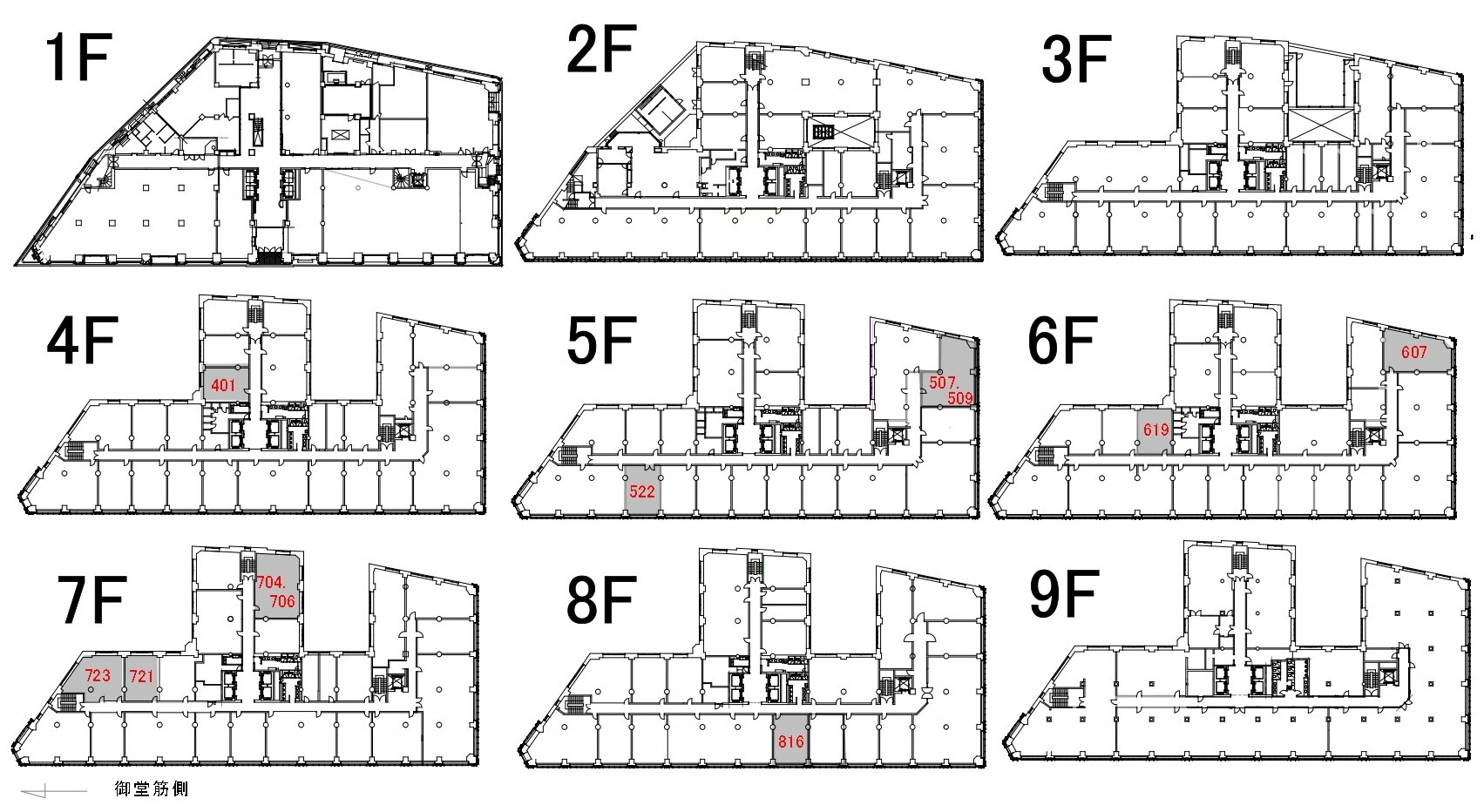 | セールス状況 | VR動画 | 御堂筋側 | 階数 | 部屋番号 |